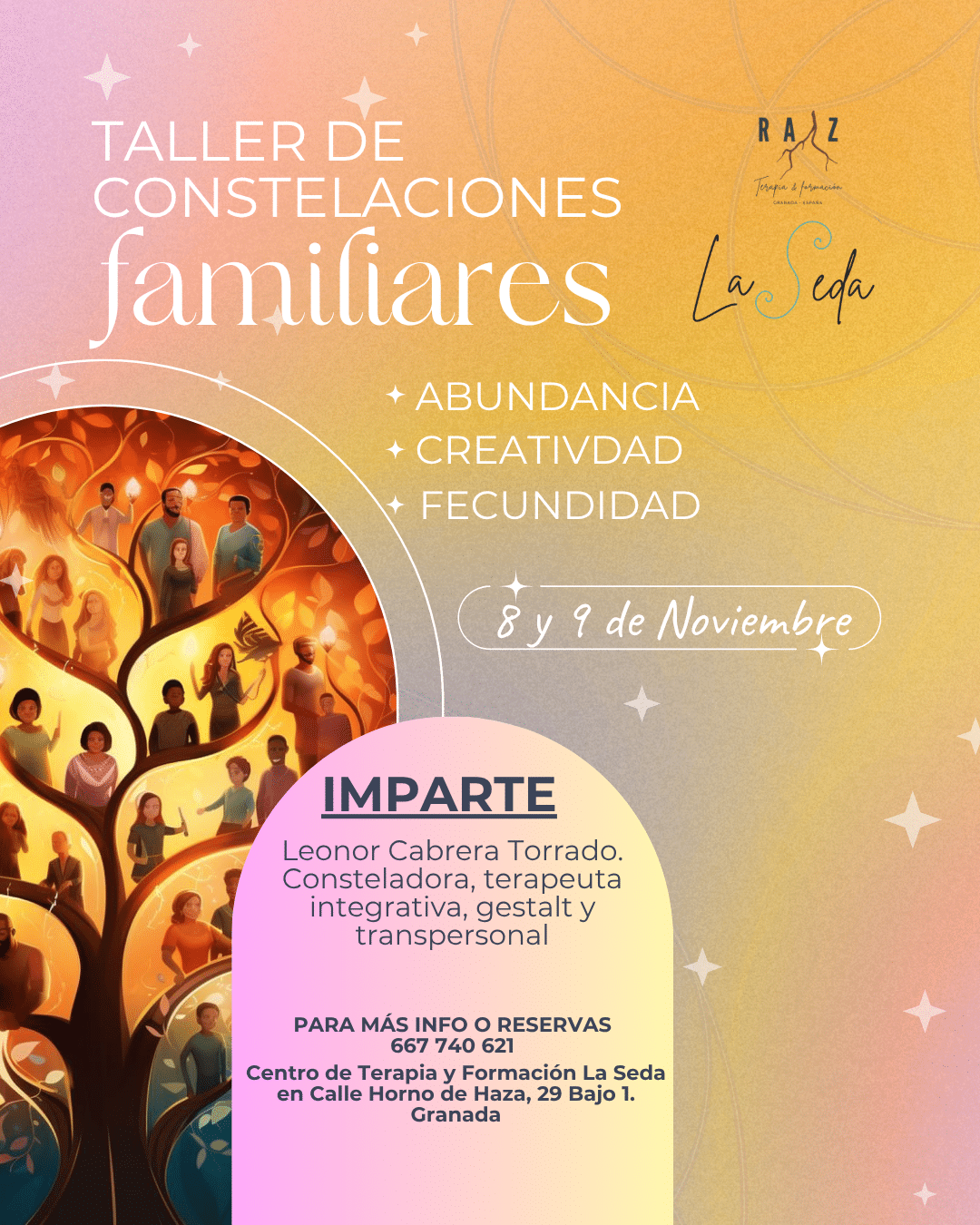 Facilita Leonor Cabrera Torrado. Consteladora familiar, especializada en trabajo con el trauma, gestaltista, colaboradora del Programa SAT de Claudio Naranjo, y autora del libro El camino de la fuerza interior.